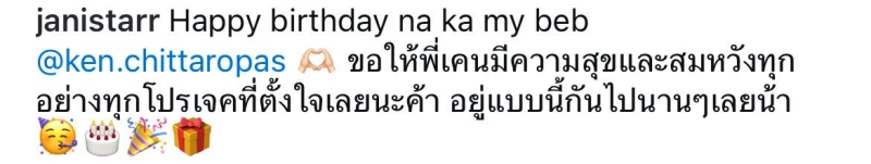 โดย มีข้อความว่าHappy birthday na ka my beb @ken.chittaropas ขอให้พี่เคนมีความสุขและสมหวังทุกอย่างทุกโปรเจคที่ตั้งใจเลยนะค้า อยู่แบบนี้กันไปนานๆเลยน้า
