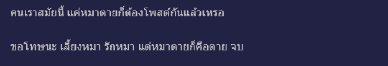แต่ทั้งนี้มีชาวเน็ตได้เข้ามาคอมเมนต์ดราม่าว่า คนเราสมัยนี้ แค่หมาตายก็ต้องโพสต์กันแล้วเหรอ ขอโทษนะ เลี้ยงหมา รักหมา แต่หมาตายก็คือตาย จบ ท่ามกลางแฟนๆต่างเข้ามาคอมเมนตปกป้อง