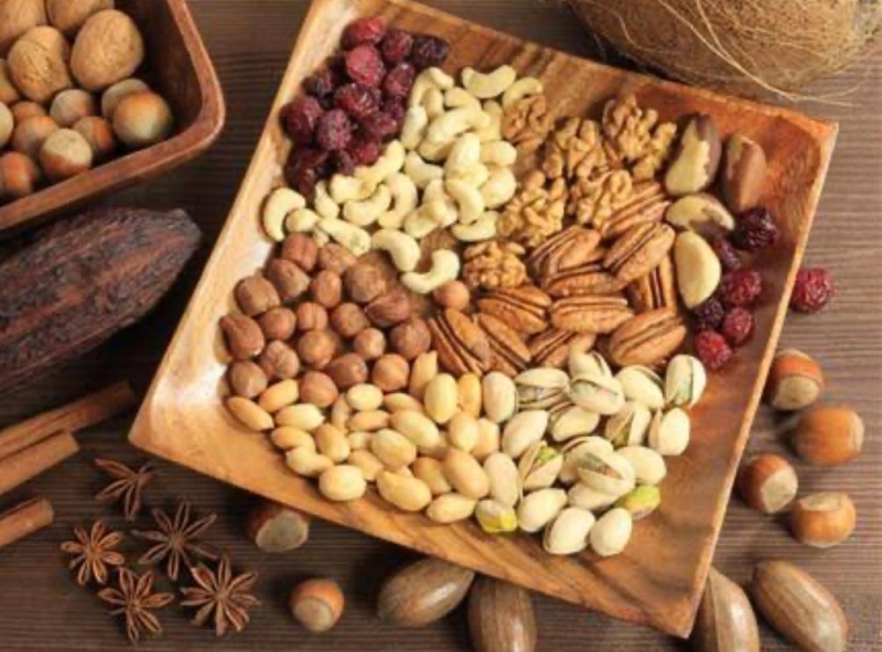 3. ถั่วรวม เช่น อัลมอนด์ วอลนัท และพิสตาชิโอ เป็นไฟเบอร์ชนิดพรีไบโอติกที่หลากหลาย ซึ่งช่วยเพิ่มความหลากหลายของจุลินทรีย์ในลำไส้ และสามารถลดความเสี่ยงมะเร็งลำไส้ได้