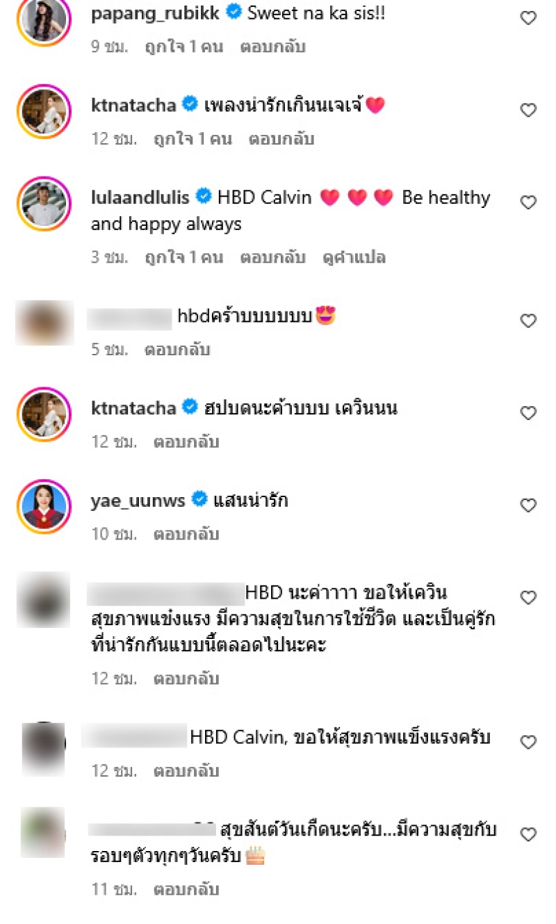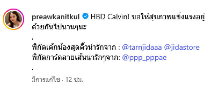 พร้อมเขียนข้อความอวยพรวันเกิดสุดหวาน ระบุว่า HBD Calvin! ขอให้สุขภาพแข็งแรงอยู่ด้วยกันไปนานๆนะ ท่ามกลางแฟนๆต่างเข้ามาคอมเมนต์ร่วมอวยพรกันอย่างมาก