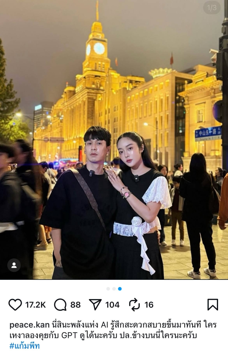 โดย มีข้อความว่า นี่สินะพลังแห่ง AI รู้สึกสะดวกสบายขึ้นมาทันที ใครเหงาลองคุยกับ GPT ดูได้นะครับ ปล.ข้างบนนี่ใครนะครับ #แก้มพีท