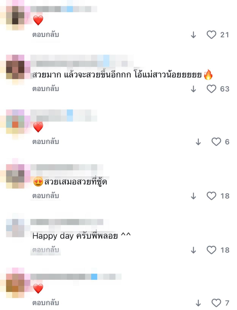 ซึ่ง มีข้อความว่า สวยมาก แล้วจะสวยขึ้นอีกก โอ้แม่สาวน้อยยย , สวยเสมอ สวยที่ซู้ด , Happy day ครับพี่พลอย เป็นต้น