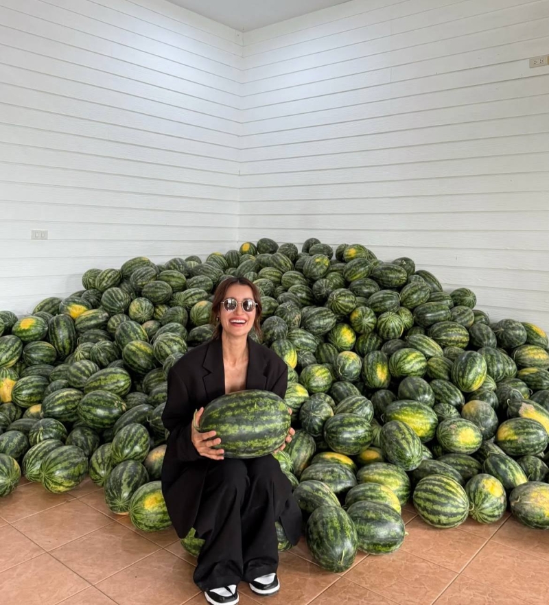 ล่าสุด เธอ ได้ออกมาโพสต์ลงอินสตราแกรมส่วนตัวของเธอ เผยให้เห็นโมเมนต์น่ารักๆ และดูอบอุ่นอีกด้วย ที่เธอได้เข้ามาช่วยเหลือชาวเกษตรกร ซึ่งตอนนี้ราคาแตงโมล่วงลงอย่างมาก