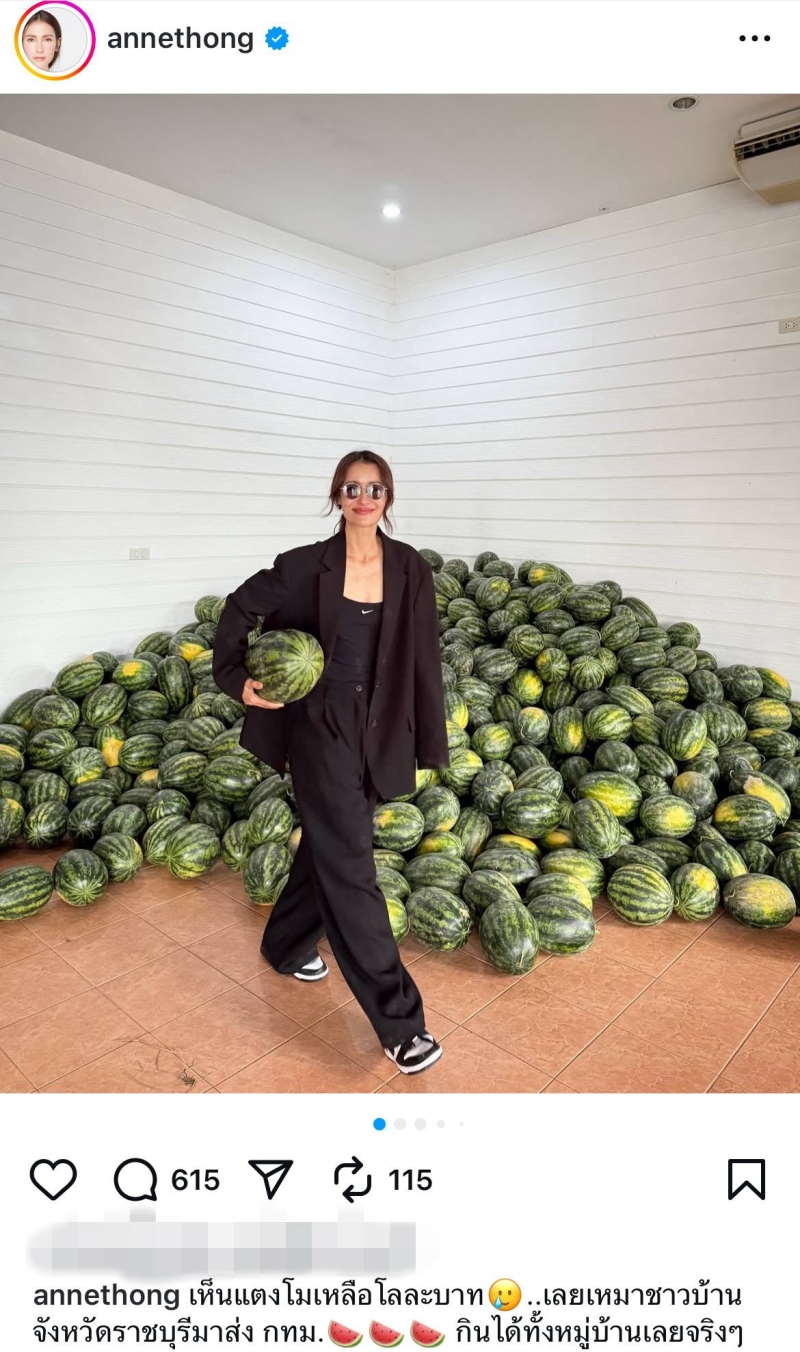 เรียกได้ว่า เป็นทั้งนางเอกในจอ และนอกจอเลยจริงๆ อย่าง แอน ทองประสม ที่ได้เดินเข้ามาอุดหนุนเกษตรกร หลังราคาแตงโมล่วงเหลือโลละบาท