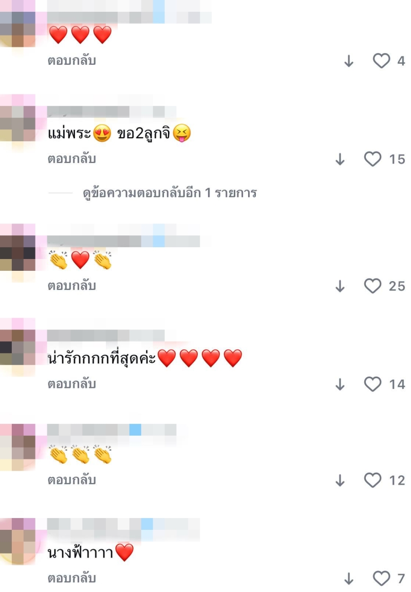 ซึ่ง มีคอมเมนต์ว่า แม่พระ ขอ 2 ลูกจิ , น่ารักที่สุดค่ะ , นางฟ้า เป็นต้น