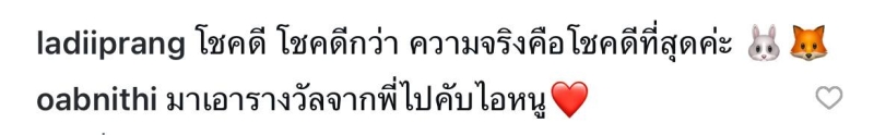 งานนี้ หวานใจอย่าง โอบ ก็ไม่น้อยหน้า รีบคอมเมนต์กลับแบบคลั่งรักว่า มาเอารางวัลจากพี่ไปไอหนู