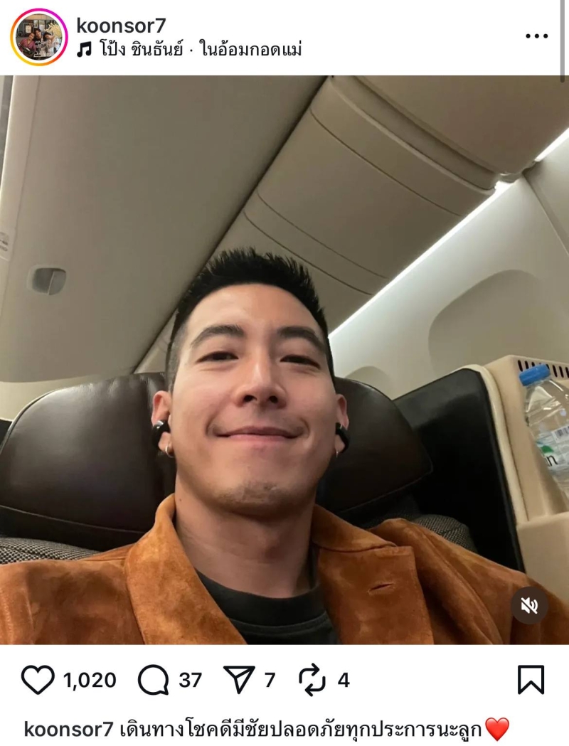 โดย แม่น้อย ได้ออกมาโพสต์ภาพโตโน่ขณะเตรียมตัวบิน พร้อมข้อความสั้นๆ ว่า เดินทางโชคดีมีชัยปลอดภัยทุกประการนะลูก เรียบง่ายแต่กินใจ สะท้อนความรักจากหัวใจของแม่ที่มีต่อลูกชาย