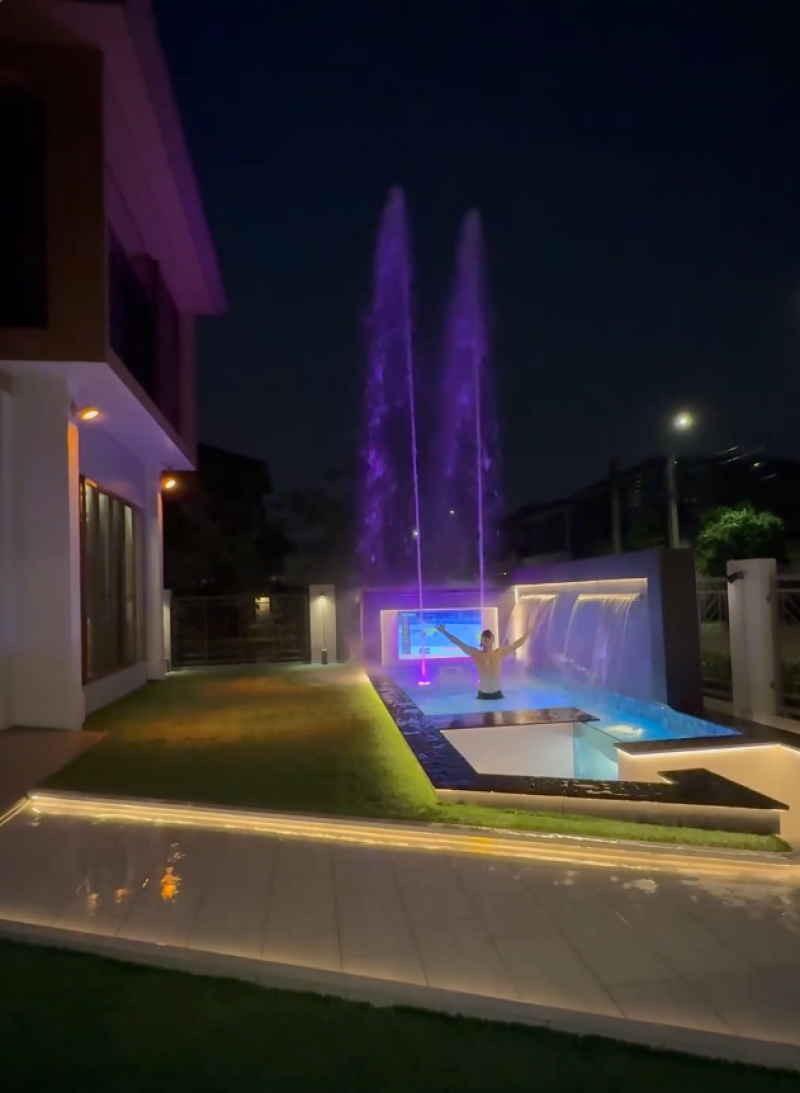 เป็นอีกหนึ่งพระเอกหนุ่มดังมากฝีมือสำหรับ โอม ภวัต จิตต์สว่างดี ที่ขยันทำงานจนเก็บเงินซื้อบ้านหรู และตกแต่งเพิ่มเติมได้สมใจอยาก ล่าสุด โอม ได้ออกมาโพสต์อินสตาแกรมเผยภาพบรรยากาศหน้าบ้านของตัวเอง ohmpawat พร้อมเขียนข้อความระบุว่า น้ำพุสูง 8 เมตร ที่สูงกว่า 8 เมตร
