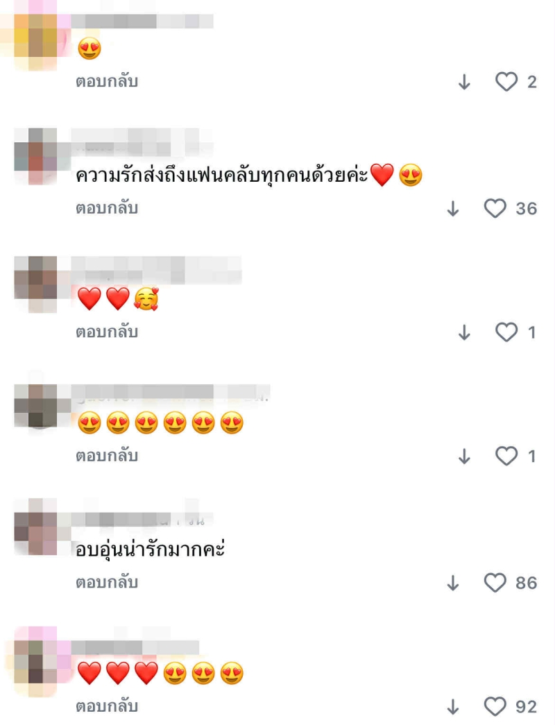 โดย มีคอมเมนต์ว่า ความรักส่งถึงแฟนคลับทุกคนด้วยค่ะ , อบอุ่นน่ารักมากแม่ เป็นต้น