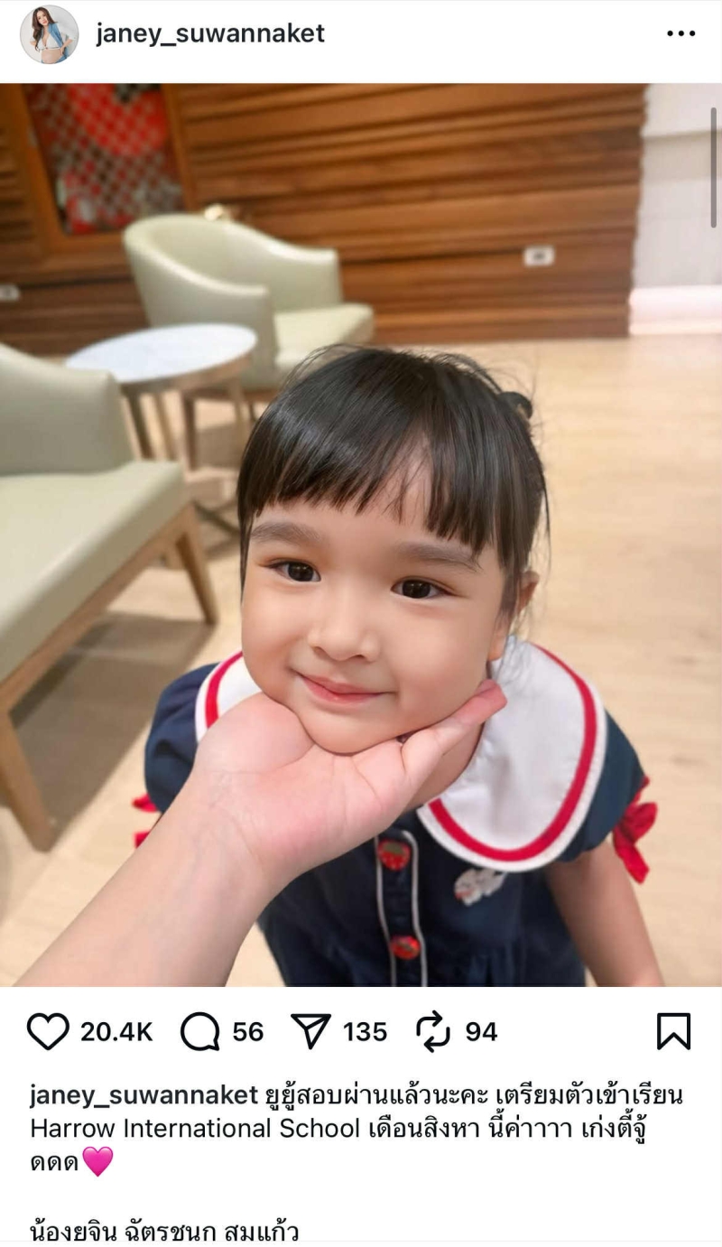 ล่าสุด เจนนี่ ได้ออกมาอัปเดตข่าวดีผ่านโซเชียลว่า ยูยู้สอบผ่านแล้วนะคะ เตรียมตัวเข้าเรียน Harrow International School เดือนสิงหานี้ค่าาาา เก่งตี้จู้ดดด ทำเอาแฟนคลับร่วมยินดีกันล้นหลาม