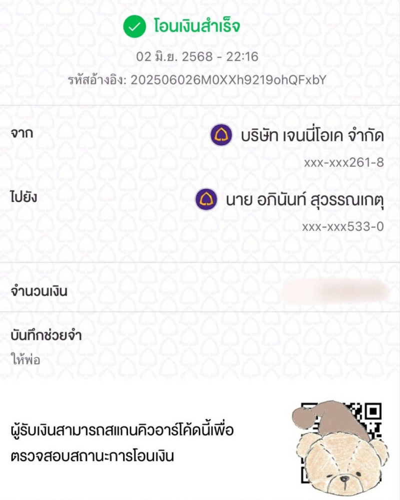 ทางด้าน เจนนี่ ไม่รอช้า ฟาดกลับเบาๆ ด้วยการโพสต์สลิปโอนเงินให้พ่อแม่ พร้อมแคปชั่นว่า ไม่เคยทำเพราะต้องให้คนชื่นชม แต่ทำด้วยใจที่อยากให้จริงๆ