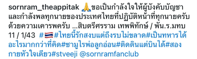 โดย มีข้อความกินใจว่า ขอเป็นกำลังใจให้ผู้บังคับบัญชา และกำลังพลทุกนายของประเทศไทย ด้วยความเคารพครับ