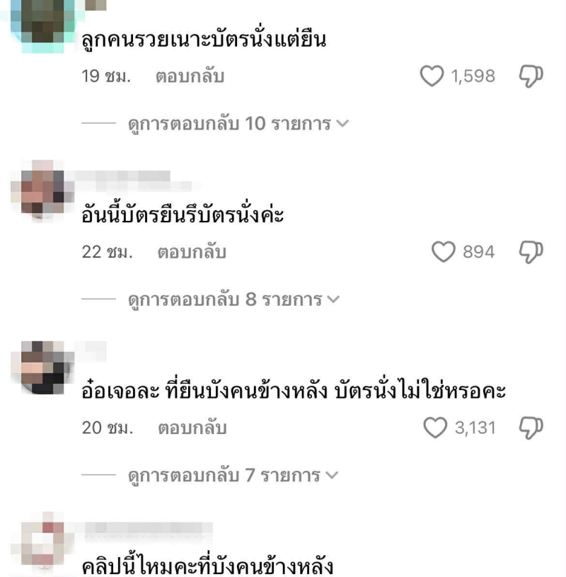 โดย ชาวเน็ตพากันตั้งคำถามถึงความเหมาะสม เช่น ลูกคนรวยเนาะ บัตรนั่งแต่ยืน , อันนี้บัตรยืนรึบัตรนั่ง , อ๋อเจอละ ที่ยืนบังคนข้างหลัง บัตรนั่งไม่ใช่หรอคะ , คลิปนี้ไหมคะ ที่บังคนข้างหลัง เป็นต้น