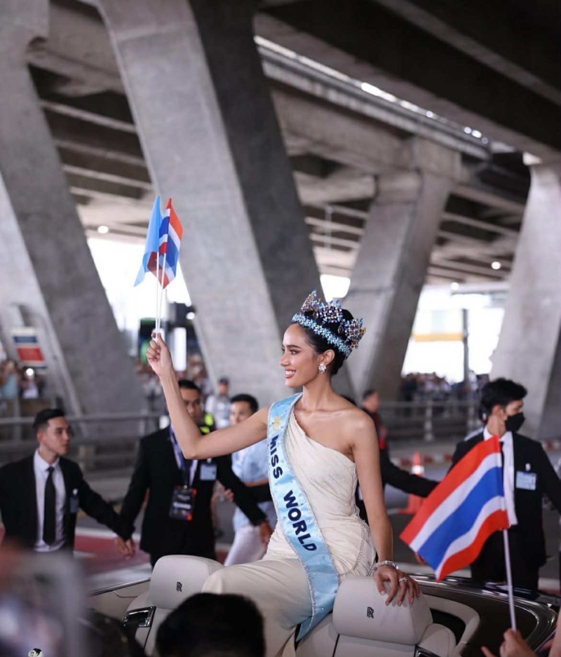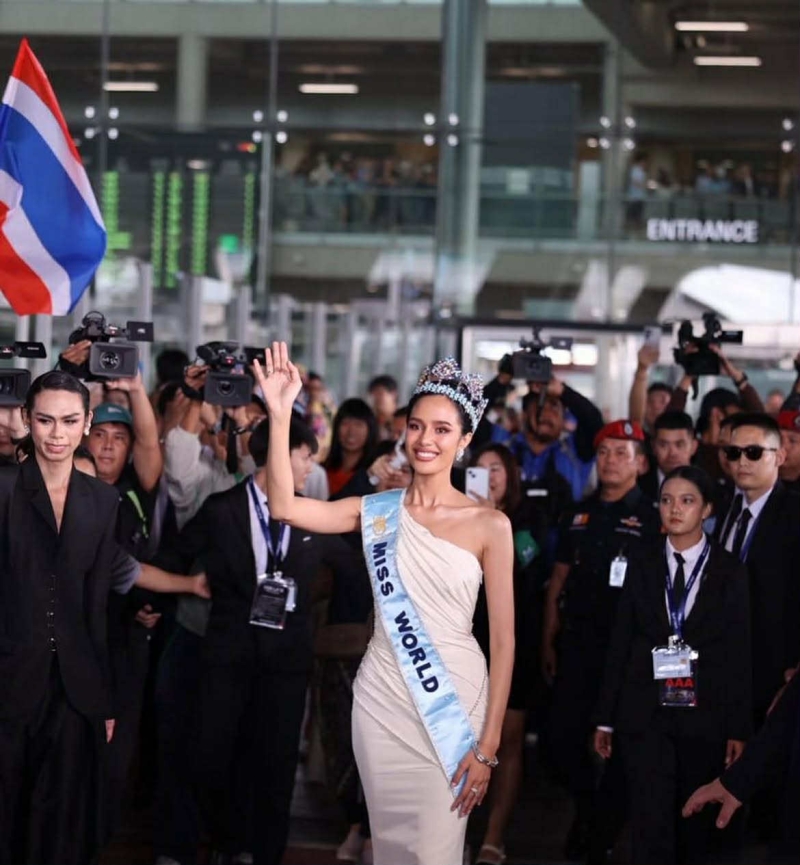 เรียกได้ว่า เป็นการต้อนรับสุดอลังการมาก เมื่อ โอปอล สุชาตา ช่วงศรี สาวงาม เจ้าของตำแหน่ง Miss World 2025 คนแรกของไทย เดินทางกลับถึงสุวรรณภูมิ ท่ามกลางเสียงเชียร์ดังกึกก้อง และฝูงชนแน่นพื้นที่ รวมถึงสื่อมวลชน และแฟนนางงามที่มารอต้อนรับอย่างล้นหลาม
