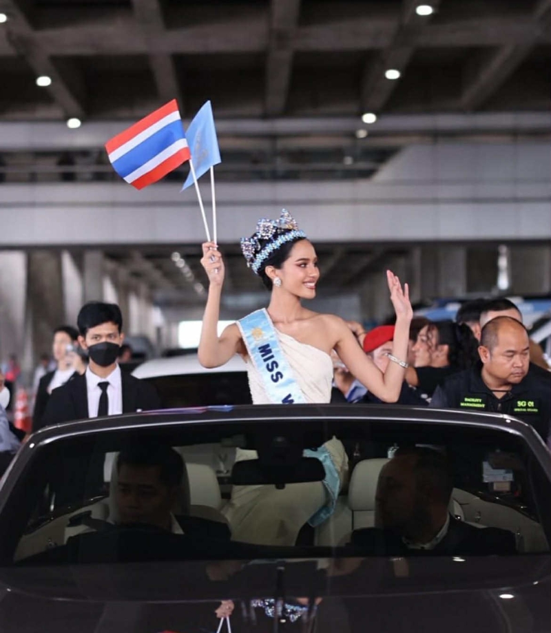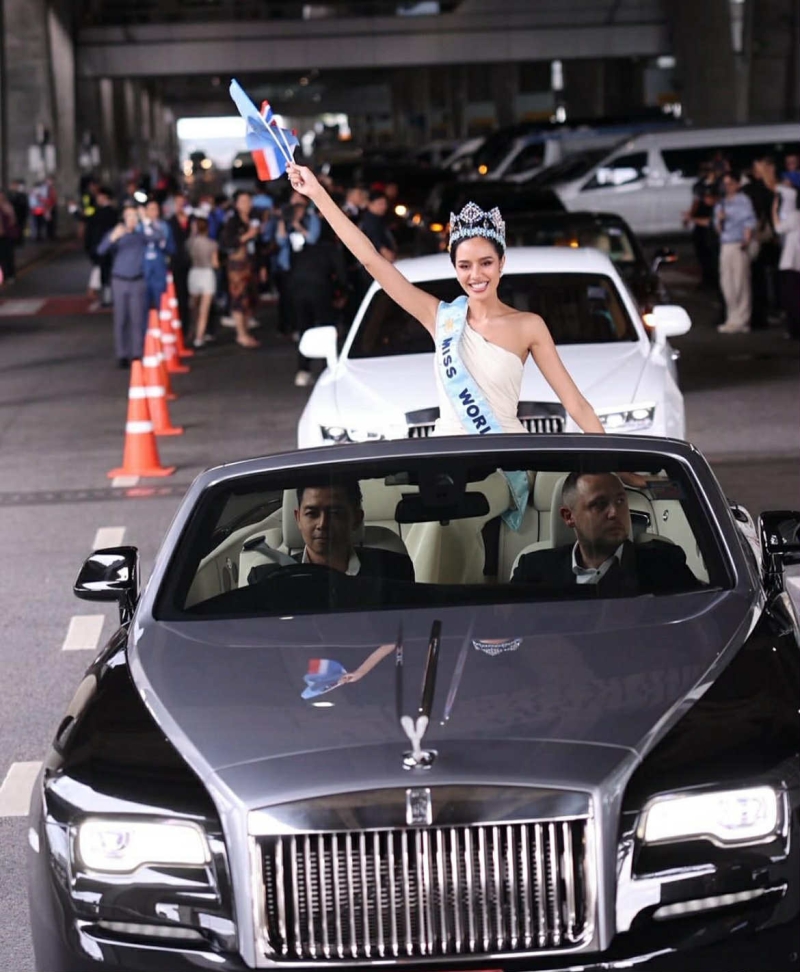 ทันที ที่ โอปอล ก้าวพ้นประตูสนามบิน บรรยากาศยิ่งฮือฮาหนักขึ้น เมื่อ Rolls-Royce Dawn สีดำเงา ทะเบียน 8131 แล่นเข้ามารับถึงหน้าประตู 10 รถเปิดประทุนสุดหรู ที่ทั้งสนามบินต้องหันมามอง เป็นอีกซีนแห่งความภูมิใจ ที่สะท้อนความยิ่งใหญ่ของนางงามจักรวาล