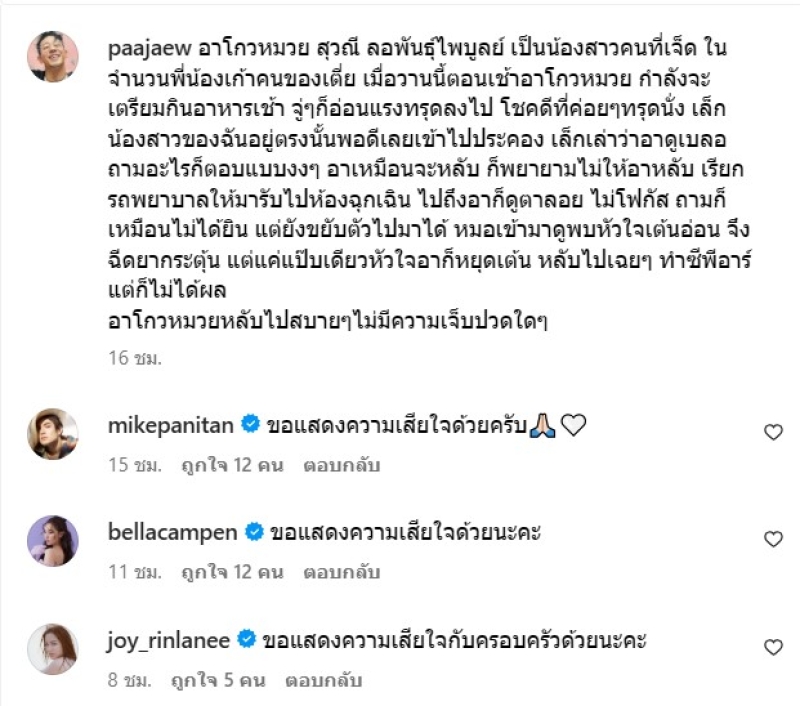 ท่ามกลางคนในวงการ และแฟนๆต่างเข้ามาแสดงความเสียใจด้วย ทางทีมข่าวก็ขอแสดงความเสียด้วยนะคะ
