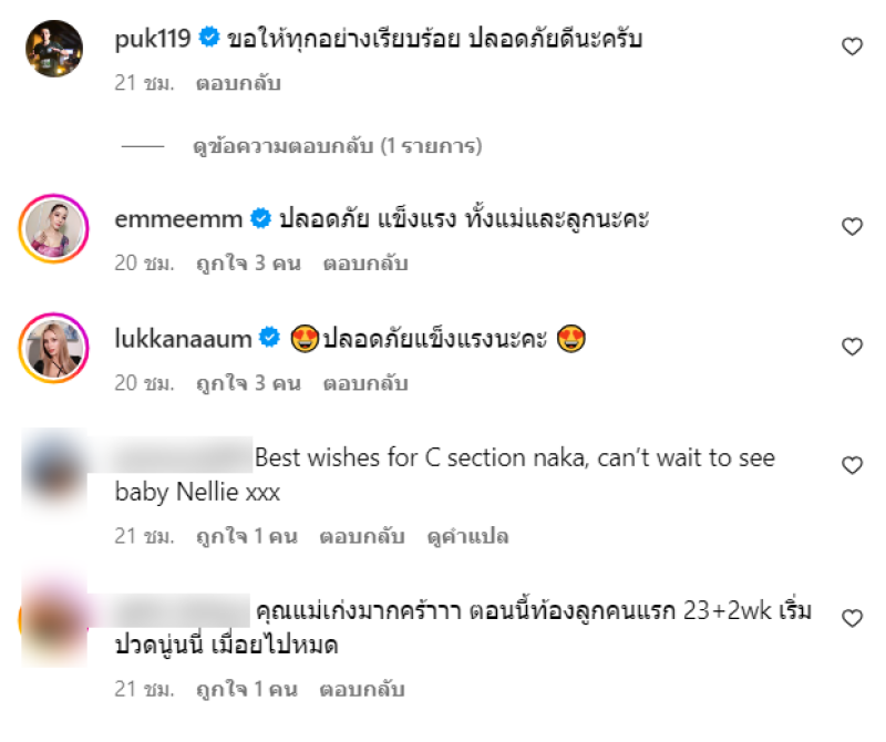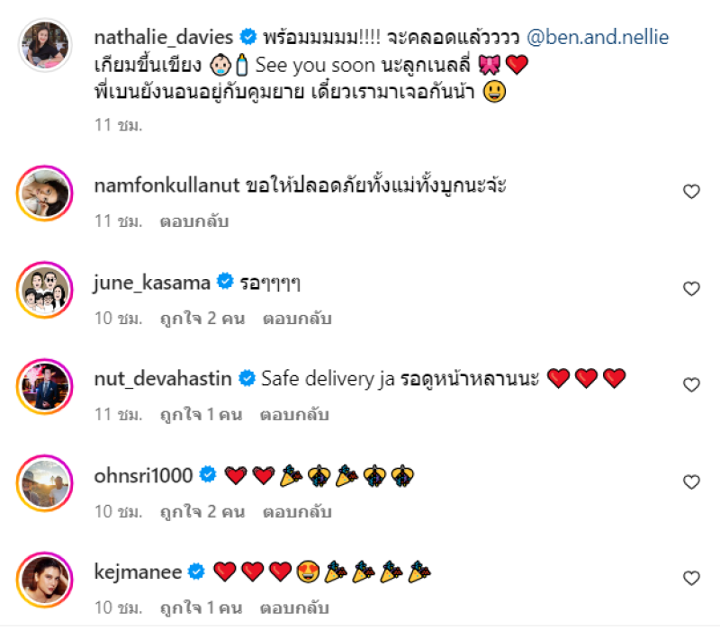 และอีกโพสต์ว่า พร้อมมมมม!!!! จะคลอดแล้วววว @ben.and.nellie เกียมขึ้นเขียง See you soon นะลูกเนลลี่ พี่เบนยังนอนอยู่กับคูมยาย เดี๋ยวเรามาเจอกันน้า