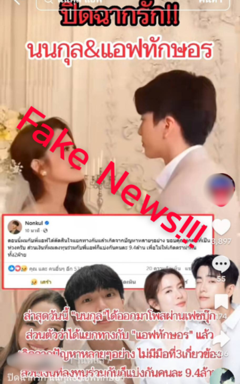 เรียกได้ว่าเป็นอีกหนึ่งคู่รักที่คอยอยู่เคียงข้างกันจนแฟนๆต่างมองว่าทั้งคู่เลือกไม่ผิดสำหรับ แอฟ ทักษอร และ นนกุล ชานน หลังทางด้านนนกุลเพิ่งสูญเสียคุณแม่ไปได้ไม่นาน ล่าสุดมีคนนำรูปภาพ นนกุลและ แอฟ ไปใช้แอบอ้างและเขียนข่าวที่ไม่เป็นความจริง ล่าสุด นนกุล ได้โพสต์ผ่านเพจเฟซบุ๊ค Nonkul