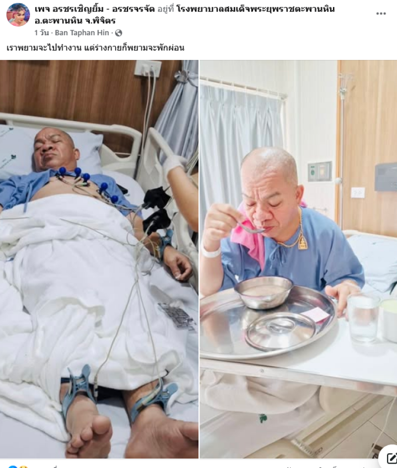 เผยว่า ผมขอขอบคุณทุกความห่วงใยถึงอรชร หมอยังนัดให้มาตรวจอีกเสมอ ตอนนี้คืออาการเหมือนเดิมคือ ไปทำงาน เวียนหัว แล้วก็วูบ หากชรยังทำงาน ไม่ห่วงสุขภาพ