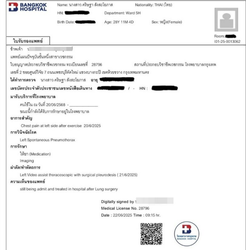 ซึ่งพอเราถามในเรื่องของการพักฟื้น ระยะเวลาไม่ค่อยต่างกันมาก ทางครอบครัวเลยเลือกเป็นการผ่าตัด ซึ่งตอนนี้ผ่าตัดผลออกมาเรียบร้อยดี แต่ต้องใช้เวลาพักฟื้น + กายภาพฟื้นฟูสมรรถภาพปอด ชิงเลยอยากจะออกมาขอโทษงานทุกงานช่วงนี้ที่ได้แคนเซิลไปนะคะ จะรีบพักผ่อนจะรีบหาย กลับมาทำงานกับทุกคนเหมือนเดิมน้า
