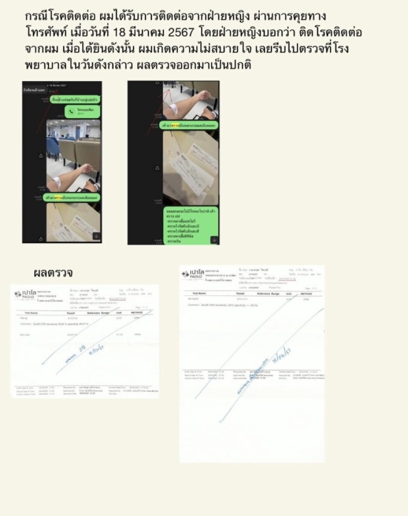 – เรื่องโรคติดต่อ วันที่ 18 มี.ค. ฝ่ายหญิงบอกติดโรคจากตน จึงรีบไปตรวจที่โรงพยาบาลในวันเดียวกัน ผลตรวจออกมาปกติ หลังจากฝ่ายหญิงออกรายการ จึงไปตรวจเลือดอีกครั้งในวันที่ 19 มิ.ย. ที่ผ่าน สรุปผลเลือดปกติ ไม่ได้เป็นโรคใดๆ