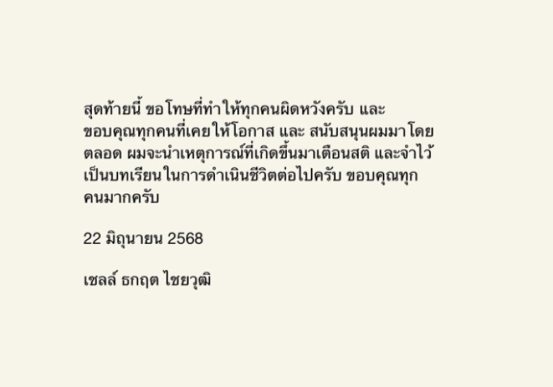 จากกรณีที่ก่อนหน้านั้น ได้มีคนออกมาแฉดาราชายโลก8ใบ และให้ไปทำแท้ง หลอกลงทุน รวมถึงมีโรคติดต่อทางเพศสัมพันธ์ ซึ่งข่าวดังกล่าวนั้นได้โยงไปที่ นักแสดงของ เชลล์ ธกฤต นักแสดงซีรีส์วายคนดัง ล่าสุดวันที่ เชลล์ ธกฤต ได้เคลื่อนไหวครั้งแรก ออกมาขอโทษ พร้อมชี้เแจงถึงเรื่องที่เกิดขึ้น โดยขอโทษฝ่ายหญิง ครอบครัว ผู้ใหญ่ ลูกค้า และค่ายที่เคยสังกัด ขอน้อมรับในส่วนที่ทำผิด แต่ในส่วนที่ไม่ถูกต้องขอชี้แจง โดยมีใจความ ดังนี้