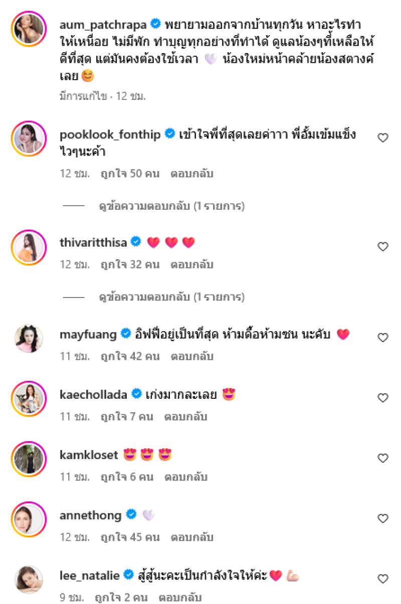 พยายามออกจากบ้านทุกวัน หาอะไรทำให้เหนื่อย ไม่มีพัก ทำบุญทุกอย่างที่ทำได้ ดูแลน้องๆ ที่เหลือให้ดีที่สุด แต่มันคงต้องใช้เวลา น้องใหม่หน้าคล้ายน้องสตางค์เลย ท่ามกลางแฟนๆเเละคนในวงการต่างเข้ามาคอมเมนต์ส่งกำลังใจกันอย่างมาก