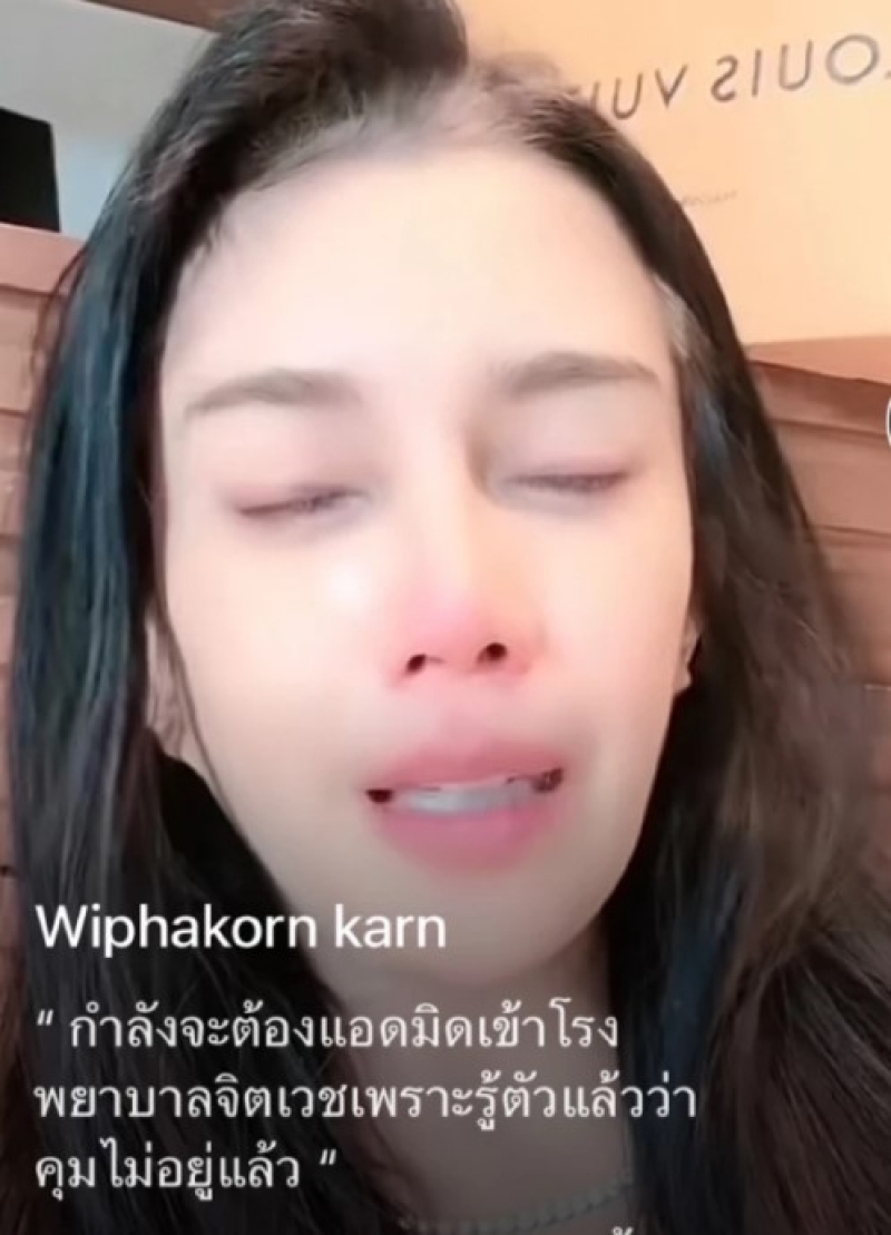 โดยได้เผยแคปชั่นในโพสต์ที่ระบุว่า หมดแล้วรอยยิ้ม เหลือแต่น้ำตาอาบหน้า ก่อนจะตามด้วยอีกคลิปที่เขียนว่า กำลังจะต้องแอดมิทเข้าโรงพยาบาลจิตเวช เพราะรู้ตัวแล้วว่าคุมไม่อยู่แล้ว ยิ่งตอกย้ำทำเอาหลายคนเป็นห่วง