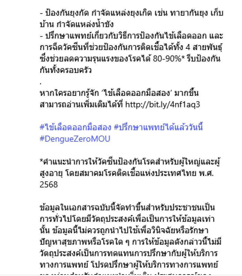ป้องกันยุงกัด กำจัดแหล่งยุงเกิด เช่น ทายากันยุง เก็บบ้าน กำจัดแหล่งน้ำขัง ปรึกษาแพทย์เกี่ยวกับวิธีการป้องกันไข้เลือดออก และการฉีดวัคซีนที่ช่วยป้องกันการติดเชื้อได้ทั้ง 4 สายพันธุ์ ซึ่งช่วยลดความรุนแรงของโรคได้ 80-90%* รีบป้องกันกันทั้งครอบครัว