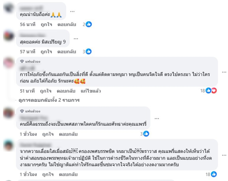 ดิฉันรู้สึกปิติมากนะคะที่ภายหลังจากนี้ ดิฉันกับคุณพี่ธรรมราช จะไม่ต้องมีการกล่าวด้อยค่าเพศสภาพ วิชาชีพ คุณวุฒิ ของกันและกันอีกต่อไป