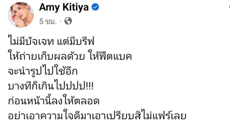 จากประเด็นที่ทางด้าน แอมมี่ กิตติยา ออกมาโพสต์ฟาดแบรนด์ L ระบุว่า ไม่มีบัจเจท แต่มีบรีฟ ให้ถ่ายเก็บผลด้วย ให้ฟีตแบค จะนำรูปไปใช้อีก บางทีก็เกินไป ก่อนหน้านี้ลงให้ตลอด อย่าเอาความใจดีมาเอาเปรียบสิไม่แฟร์เลย ล่าสุดทาง ซ้อก้าด เจ้าของแบรนด์ LOVEPOTION ได้ออกมา ขอโทษและน้อมรับผิด เผยว่า