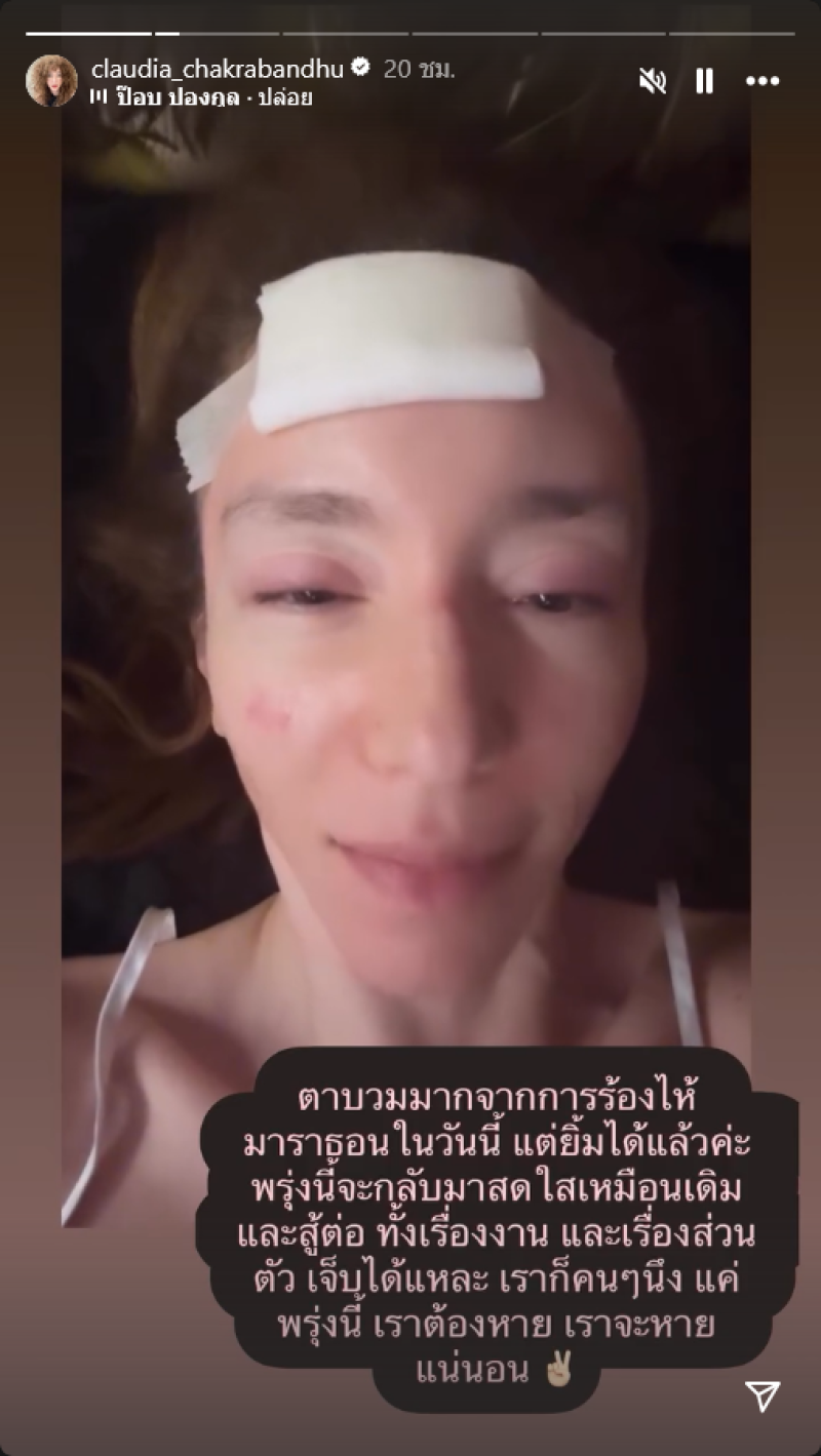 จากกรณีที่ก่อนหน้านี้ทางด้านนักแสดงสาว คลาวเดีย จักรพันธุ์ ได้ประสบอุบัติเหตุล้มหัวฟาดพื้นจนต้องเข้ารักษาตัวที่โรงพยาบาล ท่ามกลางแฟนๆเเละคนในวงการหลายคนต่างเป็นห่วงเเละส่งกำลังใจให้กันอย่างมาก ล่าสุดเจ้าตัวได้ออกมาเคลื่อนไหวผ่านสตอรี่อินสตาแกรม claudia_chakrabandhu