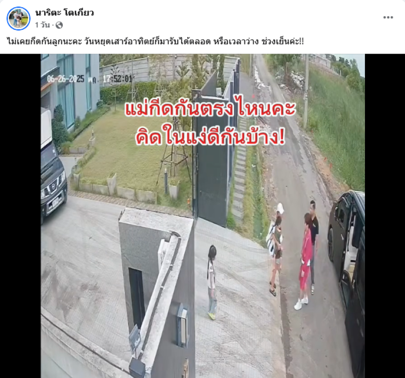 พร้อมทั้งไลฟ์สดเผยว่า ลองคิดดูนะว่ามันถูกต้องหรือไม่ถูกต้อง เอาภาพกล้องวงจรของฉันไปรับลูกไปเปิดสาธารณะชน ถ้าคิดว่าทำถูกต้องก็ทำไป แม้กระทั้งป้าที่เลี้ยงมาตั้งแต่เด็กอันที่ดีก็ดีไปแต่เขาบล็อกเรา ซึ่งเราไม่ได้มีปัญหากันแต่ไม่เข้าใจทำไมถึงบล็อก แต่ต้องแยกแยะว่าฉันต้องการสื่อสารกับลูก