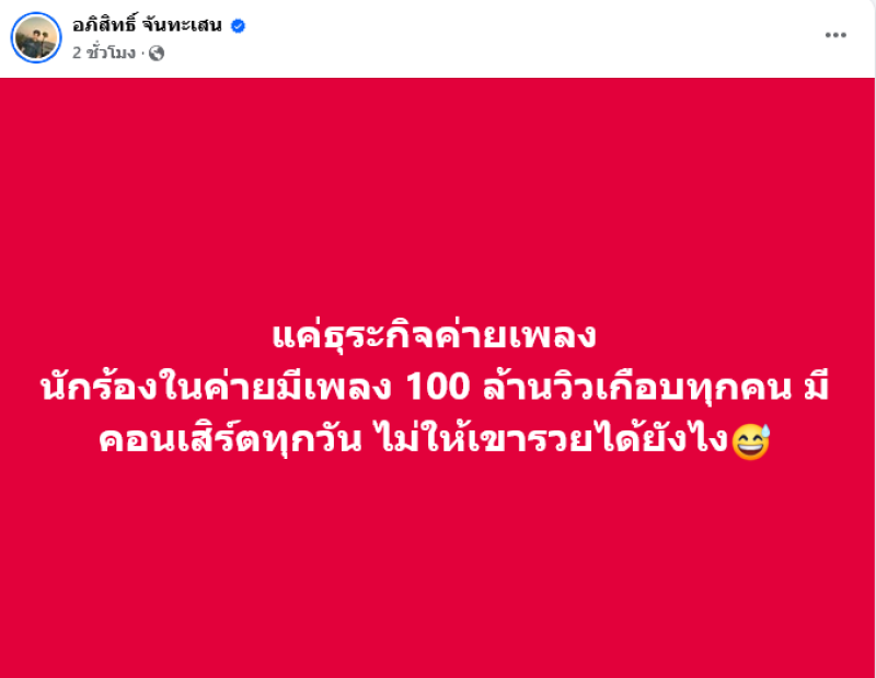 ล่าสุดทางด้านนักร้องดังอย่าง เม้ก อภิสิทธิ์ จันทะเสน ในสังกัดค่าย จอนนี่มิวสิค ได้ออกมาโพสต์ข้อความผ่านเฟซบุ๊ค อภิสิทธิ์ จันทะเสน ระบุว่า แค่ธุรกิจค่ายเพลง นักร้องในค่ายมีเพลง 100 ล้านวิวเกือบทุกคน มีคอนเสิร์ตทุกวัน ไม่ให้เขารวยได้ยังไง โดยจอนนี่ มือปราบ ก็ได้แชร์โพสต์ดังกล่าว พร้อมระบุว่า ขอบใจมากๆๆน้องรัก