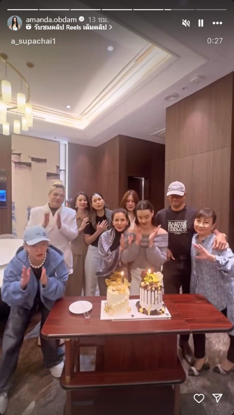 ล่าสุด อแมนด้า มาร่วมงานประกาศผลรางวัลโทรทัศน์ทองคํา ครั้งที่ 39 ได้เปิดใจถึงเรื่องนี้ให้ฟังว่า เข้าใจว่าคนก็โฟกัสที่พี่เกรท วันเกิดปีที่แล้วก็โฟกัส ปีนี้ก็อีกแล้ว ยังส่งไปให้พี่เกรทอยู่เลยบอกว่า เราเป็นกันปีละครั้งนะคะ มันเป็นฟีลแก๊งผู้ใหญ่ที่เราฉลองด้วยกันอยู่แล้วทุกปี ตั้งแต่ปีที่แล้ว แล้วก็ มาปีนี้อีก