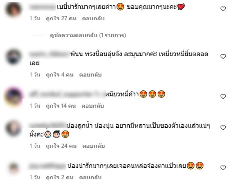 ท่ามกลาง คนในวงการ และ แฟนๆ ต่างเข้ามาคอมเมนต์ถึงความน่ารักของน้องเหมียวหมี่ และแอบแซวนนกุล และทางลูกน้ำกับนุ่นด้วยว่า อยากมมีหลานเป็นของตัวเองแล้วหรือเปล่านะ