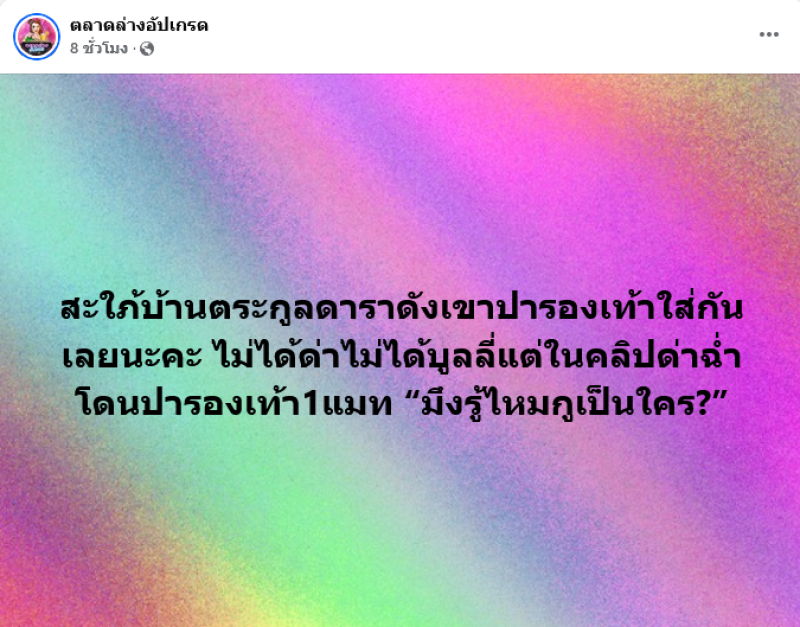 โดยระบุว่า สะใภ้บ้านตระกูลดาราดังเขาปารองเท้าใส่กันเลยนะคะ ไม่ได้ด่าไม่ได้บูลลี่แต่ในคลิปด่าฉ่ำ โดนปารองเท้า1แมท xึงรู้ไหมxูเป็นใคร