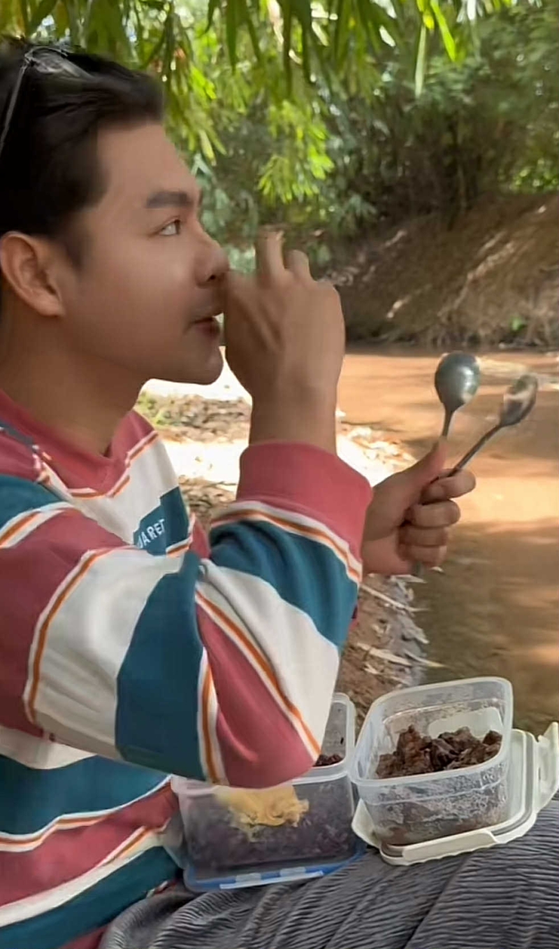 โดย เพ็ชร ได้เผยโมเมนต์ผ่าน Tiktok phet_thakrit เป็นคลิปนั่งกินข้าวกล่องที่ทำมาเอง เมนูชิลๆ นั่งกินริมลำธารกับ แฟนสาว ท่ามกลางธรรมชาติ