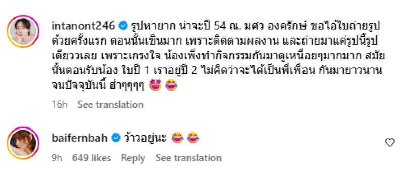โดยภายหลังสาวใบเฟิร์นก็เข้ามาคอมเมนต์ต่อโพสนี้ด้วยเช่นกัน ทำเอาชาวเน็ตอดเอ็นดูไม่ได้ ทั้งยังชื่นชมกับมิตรภาพความสัมพันธ์อันยาวนานของทั้งคู่อีกด้วย