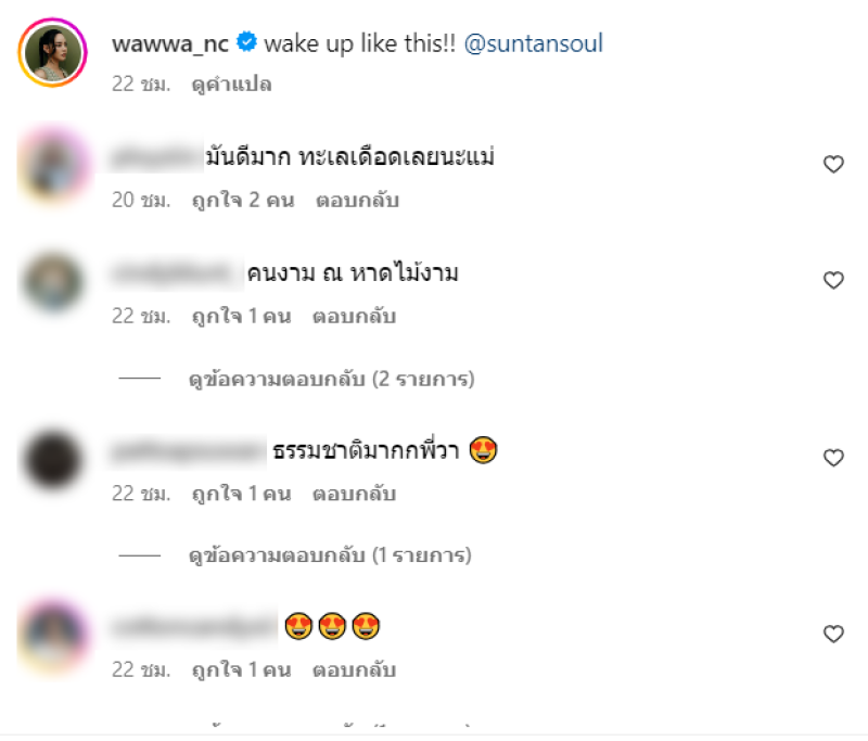 งานนี้ เหล่าแฟนๆแห่คคอมเมนต์กันสนั่นไอจี เช่น มันดีมาก ทะเลเดือดเลยนะแม่,คนงาม ณ หาดไม้งาม,ธรรมชาติมากกพี่วา ,Island girl สุดๆ เป็นต้น