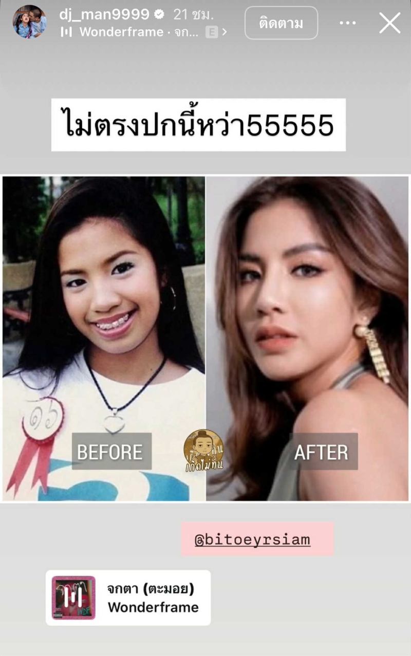 โดย โพสต์ผ่านอินสตราแกรม dj_man9999 แชร์ภาพของ ใบเตย ตั้งแต่สมัยเข้าวงการใหม่ๆ เฉพาะช่วงที่ยังดัดฟันอยู่ พร้อมกับเขียนข้อความแซวว่า ไม่ตรงปกนี้หว่า 55555