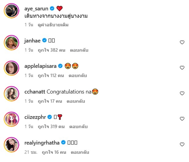 ท่ามกลาง แฟนๆและเพื่อนๆเข้ามาคอมเมนต์อวยพรจำนวนมาก