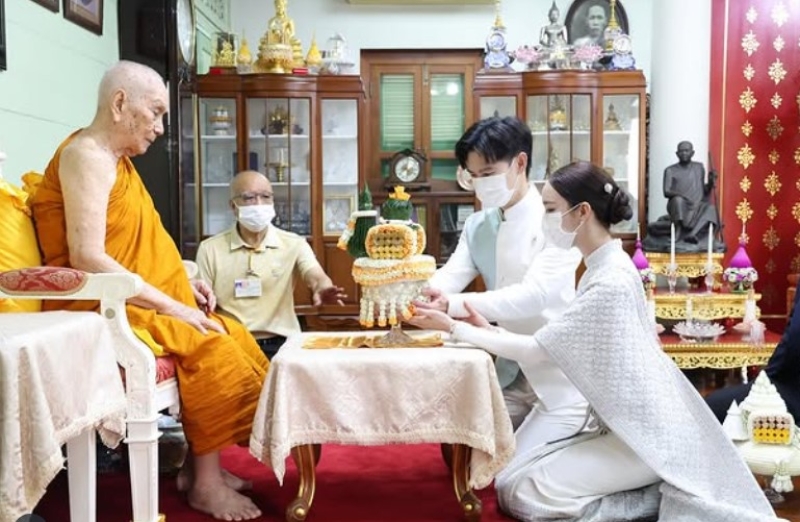 จากกรณีที่ก่อนหน้านั้น อย่างดาราสาว อย่าง อ้าย สรัลชนา ที่ก่อนหน้านั้น แฟนหนุ่ม มาร์ค บุญปวีณ นักธุรกิจหนุ่มแห่ง ไทยยูเนี่ยน กรุ๊ป คุกเข่าขอแต่งงานแล้ว ซึ่งก่อนหน้านั้น ทั้งคู่ก็ได้เข้ารับพระราชทานน้ำพระพุทธมนต์ จากเจ้าพระคุณสมเด็จพระอริยวงศาตญาณ สมเด็จพระสังฆราชสกลมหาสังฆปริณายก เพื่อความเป็นสิริมลคลแก่ชีวิตคู่นั่นเอง