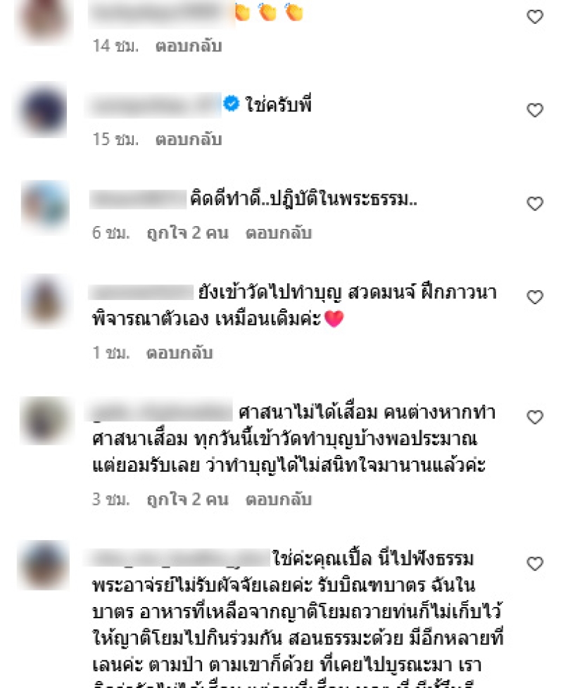 ล่าสุดทางด้านนักแสดงรุ่นใหญ่ เปิ้ล นาคร ได้ออกมาเคลื่อนไหวผ่านอินสตาแกรม ระบุว่า สงสารพระที่ประพฤติดี เพราะดีๆยังมีอยู่เยอะนะ พร้อมเขียนแคปชั่น บวชมาแล้ว 2 ครั้ง ไม่ได้จะเข้าข้างพระเลว แต่พระสงฆ์ดีๆมีอยู่จริงสงสารพระพุทธเจ้า สาธุ