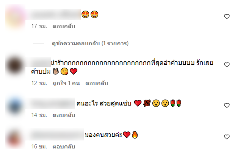 งานนี้ ความแซ่บนั้นแทบทะลุจอ ด้านแฟนหนุ่มรีบเข้ามาคอมเมนต์ และมีเพื่อนๆในวงการและแฟนๆก็เข้ามาเมนต์เช่นกัน อาทิ โหหหหหห พี่สาววว ทำผมใจสั่นอีกและ,ละลายนะแบบนี้,คนอะไร สวยสุดแซ่บ ,มองคนสวยค่ะ,น่าร๊ากกกกกกกกกกกกกกกกกกกกกกที่สุดอ่าค้าบบบบ รักเลยค้าบปม เป็นต้น