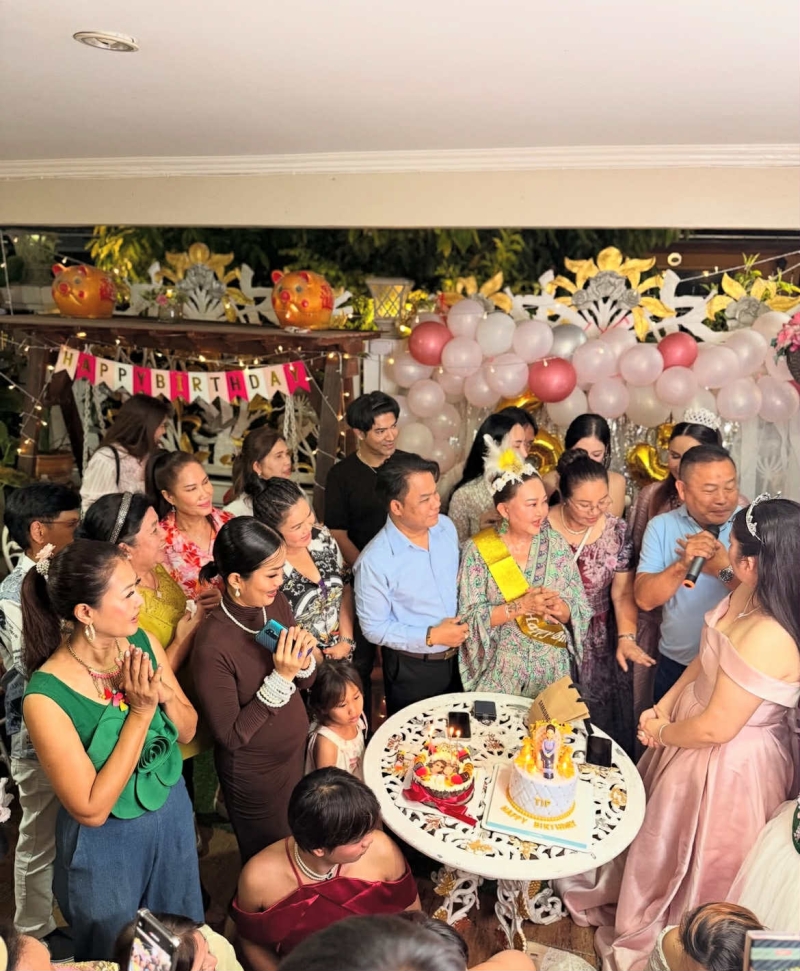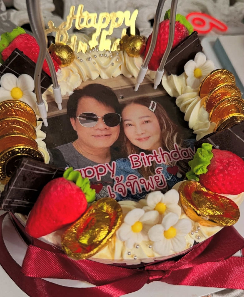 โดย มีข้อความว่า HBD พี่ทิพย์ ภรรยาคุณยิ่งยง ยอดบัวงาม ขอให้มีความสุข สุขภาพแข็งแรง สมปรารถนาอย่างที่คิดทุกสิ่งอย่าง สาว 2000 ปี รวยเงิน รวยทอง รวยสุขภาพนะคะ พี่สาว