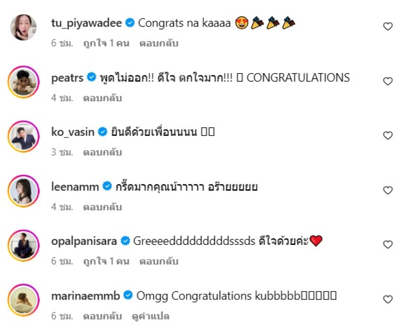 ท่ามกลางเพื่อนในวงการร่วมยินดีด้วยจำนวนมาก
