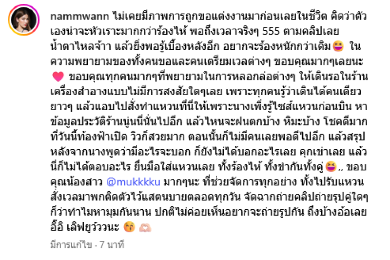 แล้วยิ่งพอรู้เบื้องหลังอีก อยากจะร้องหนักกว่าเดิม ขอบคุณมากๆเลยนะ ขอบคุณทุกคนมากๆที่พยายามในการหลอกล่อต่างๆ ให้เดินรอในร้านเครื่องสำอางแบบไม่มีการสงสัยใดๆเลย เพราะทุกคนรู้ว่าเดินได้คนเดียวยาวๆแล้วแอบไปสั่งทำแหวนให้เพราะนางเพิ่งรู้ไซส์แหวนก่อนบิน