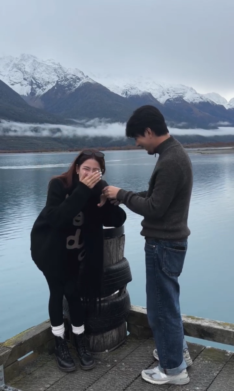 หาข้อมูลประวัติร้านนู่นนี่นั่นไปอีก แล้วไหนจะฝนตกบ้าง หิมะบ้าง โชคดีมากที่วันนี้ท้องฟ้าเปิด วิวก็สวยมาก ตอนนั้นก็ไม่มีคนเลยพอดีไปอีก แล้วสรุปหลังจากนางพูดว่ามีอะไรจะบอก ก็ยังไม่ได้บอกอะไรเลย คุกเข่าเลย แล้วนี่ก็ไม่ได้ตอบอะไร ยื่นมือใส่แหวนเลย ทั้งร้องไห้ ทั้งขำกันทั้งคู่