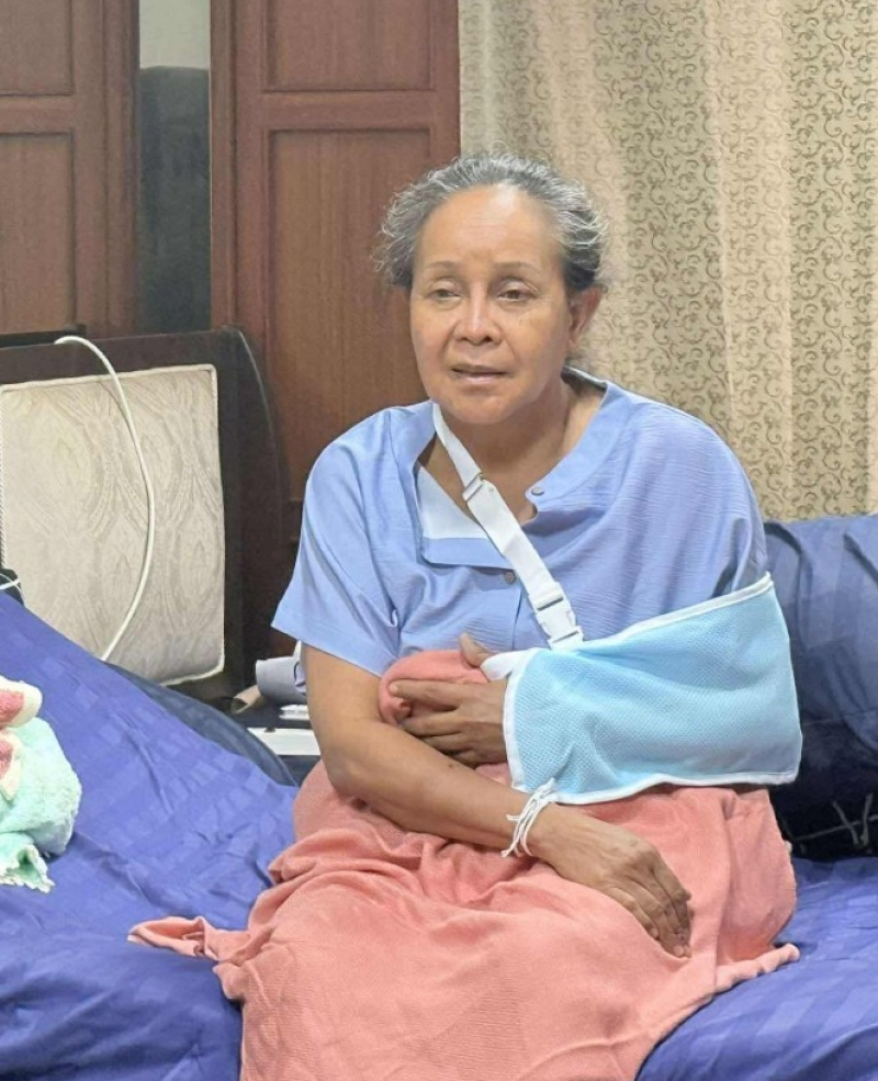 มีสติ แต่ความไวของรถที่พลิกคว่ำมันไวเกินกว่าเราที่จะรู้ว่าเขาคว่ำ แม่เข้าใจว่าเขาชนปึ้งแล้วเขาจอด แม่ว่าจะไปเปิดประตู ด้านข้างแล้วก็จะมาปลดเข็มขัด แต่จริงๆแล้วเราแขวนอยู่ข้างบน ส่วนสุขภาพตอนนี้ไปเช็กมาแล้วหมอบอกว่าดีขึ้น แล้วก็ไม่อยากให้ออกงาน ไม่อยากให้เคลื่อนไหว แต่แม่บอกว่าเราตกงานยาวไม่ได้